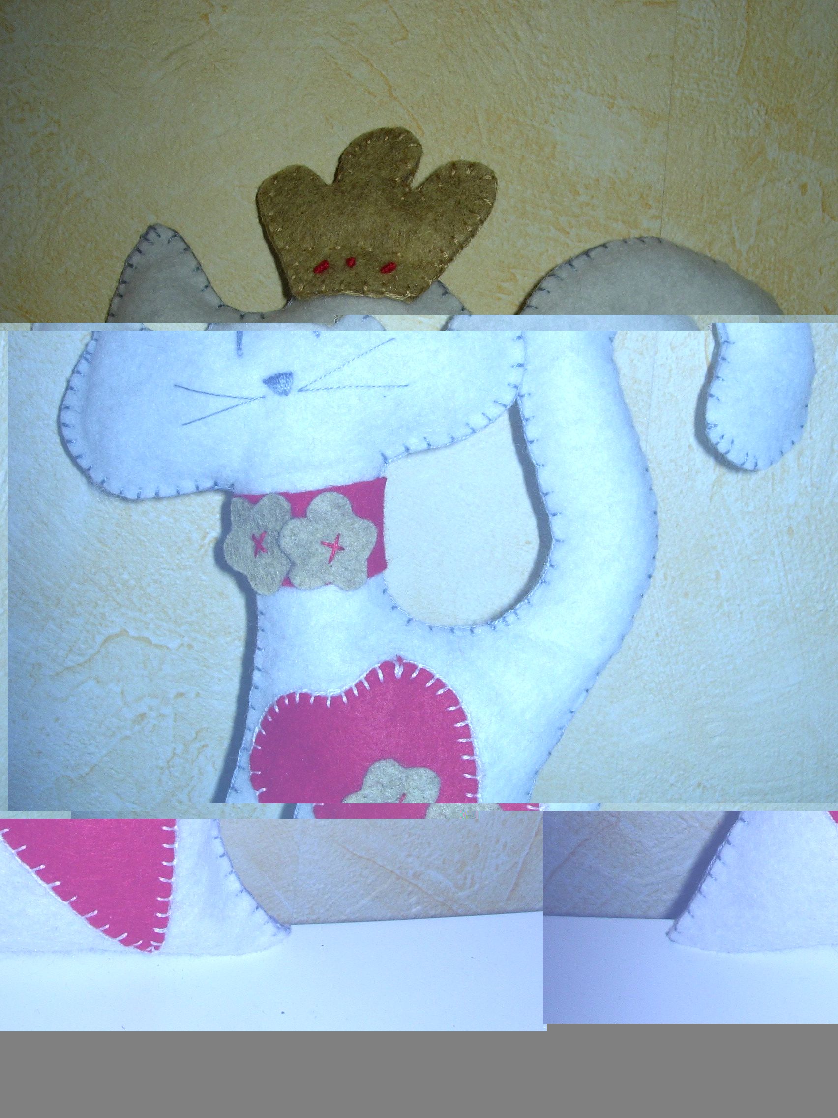 Voici un petit chat fait à partir du magazine "L'atelier de couture", j'ai un peu transformé le modèle, il est très simple à faire, je l'ai fait au point de feston mais il peut aussi être fait au point droit.